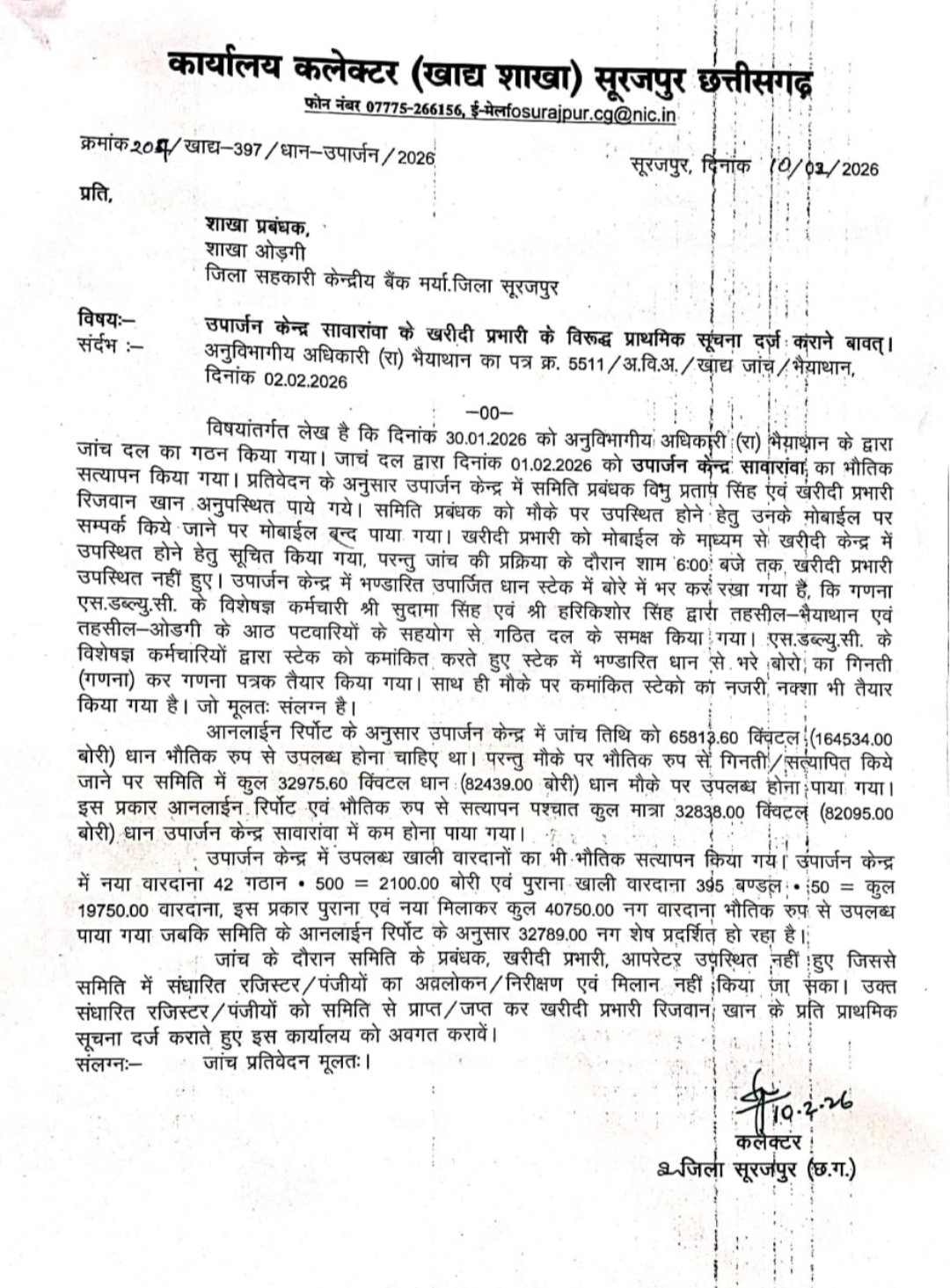 सूरजपुर। प्रदेश में सुशासन और भ्रष्टाचार पर “जीरो टॉलरेंस” का दम भरने वाली व्यवस्था के सामने सावरावा धान खरीदी केंद्र का मामला एक आईना बनकर खड़ा हो गया है। करोड़ों…