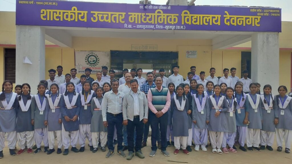 सूरजपुर /देवनगर/- स्व, श्री रती राम पनिका जी शासकीय उच्चतर माध्यमिक विद्यालय देवनगर के प्राचार्य शम्भू प्रसाद सहानी के द्वारा स्कूल में अध्यनरत छात्र एवं छात्राओं के पालक पालिकाओं का बैठक आयोजन किया गया बैठक में उपस्थित सभी पालक एवं पालिकाओं को संबोधन करते हुए उन्होंने यह कहा हैं कि अपने-अपने बालक एवं बालिकाओ को समय पर स्कूल भेजें एवं स्कूल आते जाते समय अपने अपने बालक एवं बालिकाओ के गतिविधियों को भी ध्यान में रखें जिससे कि आपका लडका या लडकी किसी गलत रास्ते पर ना भटक जाए एवं किसी भी तरह की नशा एवं गलत संगति की ओर उनका ध्यान आकर्षित ना हो पाए और छात्र एवं छात्राएं अपने उज्जवल भविष्य की ओर अग्रसर हो सकें।