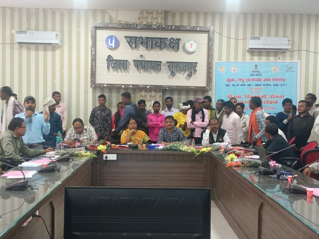 सूरजपुर/ जिला व्यापार एवं उद्योग केन्द्र सूरजपुर द्वारा जिला पंचायत सूरजपुर के सभाकक्ष में प्रधान मंत्री विश्वकर्मा योजना एवं प्रधानमंत्री सूक्ष्म खाद्य उद्यम उन्नयन योजना (पीएमएफएमई) पर जागरूकता कार्यशाला का आयोजन किया गया। इस कार्यशाला में केन्द्र व राज्य सरकार द्वारा जिले में व्यापार एवं उद्योगों को बढ़ाने के लिए चलायी जा रही योजनाओं जैसे पीएम विश्वकर्मा योजना अंतर्गत श्री उमेश प्रसाद, सहायक निदेशक, सूक्ष्म, लघु एवं मध्यम उद्यम मंत्रालय, भारत सरकार और पीएमएफएमई योजनांतर्गत जानकारी श्री भूषण कुमार प्रोजक्ट मैनेजर द्वारा जानकारी वीडियो व प्रेजेंटेशन के माध्यम से दिया गया । कार्यशाला में बताया गया कि पीएमएफएमई योजना के अंतर्गत नवीन सूक्ष्म खाद्य प्रसंस्करण उद्योगों की स्थापना व स्थापित उद्योग के विस्तार के लिए बैंक के माध्यम से ऋण दिया जाता है । निजी सूक्ष्म उद्यमों को परियोजना लागत से 35 प्रतिशत की दर में अनुदान देने का प्रावधान है। इसके लिए हितग्राही की उम्र 18 वर्ष होनी चाहिए। इसके अलावा आवेदक की कोई न्यूनतम शैक्षणिक योग्यता आवश्यक नहीं है। एक परिवार का एक व्यक्ति ही योजना के लिए पात्र है। इसके लिए आधार कार्ड, पेन कार्ड, बैंक पासबुक, राशन कार्ड, प्रोजेक्ट रिपोर्ट एवं बैंक के स्टेटमेंट की आवश्यकता होती है। सूक्ष्म, लघु एवं मध्यम उद्यम मंत्रालय, भारत सरकार के सहायक निदेशक श्री उमेश प्रसाद द्वारा कार्यशाला में पीएम विश्वकर्मा योजना की विस्तार से जानकारी प्रदान किया गया ।