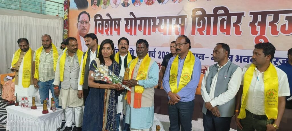 बाईक रैली के साथ रोड शो, गायत्री परिवार द्वारा महायज्ञ एवं मंत्री के द्वारा योग किट का वितरण कर कार्यक्रम का शुभारंभ किया गया। 03 दिवसीय योगाभ्यास प्रशिक्षण शिविर मंगल भवन सूरजपुर एवं शिव मंदिर प्रांगण भटगांव में कार्यक्रम का समापन किया गया। कार्यक्रम के समापन में गायत्री परिवार के श्री विमल रजक एवं अन्य जनप्रतिनिधि उपस्थित रहें। कार्यक्रम का आयोजन श्री गौरव कुमार देवांगन छत्तीसगढ़ योग आयोग रायपुर एवं योग आयोग प्रबंधक श्री रविकान्त कुम्भकार के समन्वय से किया गया।