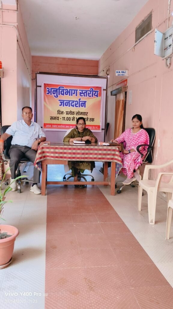सूरजपुर/अनुविभागी कार्यालयों में आज से अनुभाग स्तरीय जनदर्शन का प्रारंभ हो गया है। कलेक्टर एस. जयवर्धन के निर्देश के अनुपालन में जिले वासियों को उनके निकटतम स्थान पर उनकी समस्याओं का निदान मिले इस हेतु प्रत्येक सोमवार तय समय सीमा अंतर्गत अनुविभागीय कार्यालयों में अनुभाग स्तरीय जनदर्शन लगाये जा रहे हैं। इस क्रम में आज सूरजपुर, प्रतापपुर, रामानुजनगर व भैयाथान समस्त स्थानों पर 12 से 02 बजे तय समय सारणी के अनुसार जनदर्शन का आयोजन किया गया।क्षेत्रवासियों ने अपने समस्याओं से संबंधित आवेदन प्रस्तुत किये, जिस पर सक्षम अधिकारी द्वारा अग्रिम कार्यवाही सुनिश्चित की जायेगी।