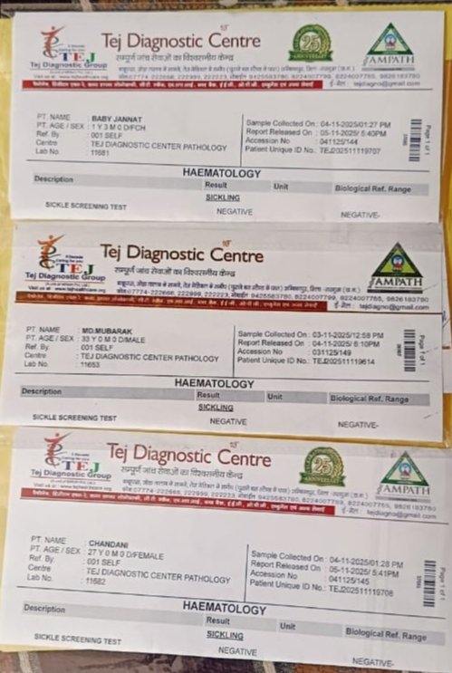 संदेह बरकरार रहने पर मोहम्मद मुबारक ने अपनी पत्नी चांदनी और पुत्री जन्नत का पुनः परीक्षण अंबिकापुर स्थित तेज डायग्नोस्टिक सेंटर में कराया, जहां तीनों की सिकलिंग रिपोर्ट नेगेटिव आया।