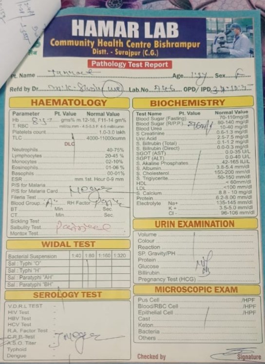 सूरजपुर। राज्य सरकार द्वारा आम जनता को बेहतर स्वास्थ्य सुविधाएं उपलब्ध कराने के लिए करोड़ों रुपये खर्च किए जा रहे हैं, बावजूद इसके सरकारी अस्पतालों में लापरवाही के मामले थमने का नाम नहीं ले रहे हैं। ताजा मामला सूरजपुर जिले के सामुदायिक स्वास्थ्य केंद्र बिश्रामपुर से सामने आया है, जहां एक मासूम बच्ची की सिकलिंग जांच रिपोर्ट गलत बनाए जाने का गंभीर आरोप लगा है।