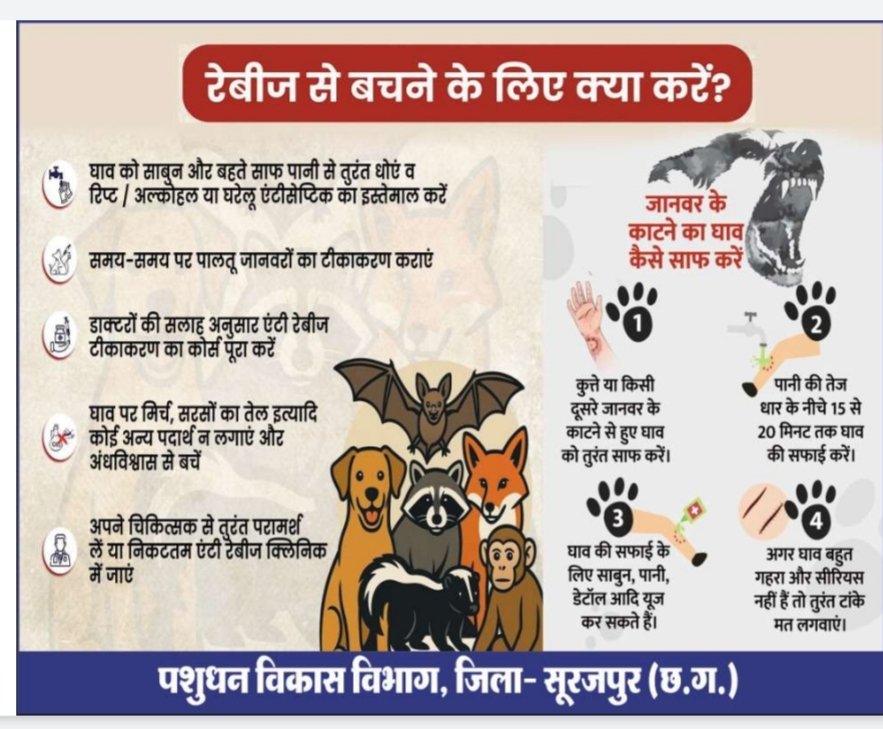 नागरिकों को सलाह दी गई है कि किसी पशु द्वारा काटे जाने पर घाव को तुरंत साबुन और बहते पानी से धोएं तथा चिकित्सक से परामर्श लेकर एंटी-रेबीज टीका अवश्य लगवाएं। साथ ही पालतू श्वानों का नियमित टीकाकरण सुनिश्चित करें।