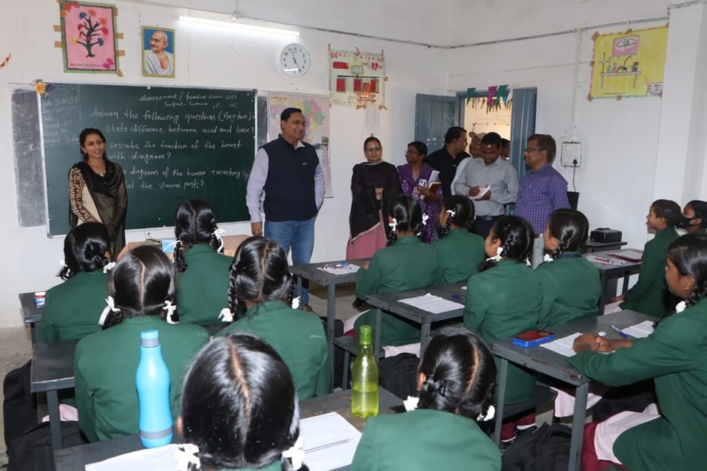 सूरजपुर/ सरगुजा कमिश्नर डॉ. संजय कुमार अलंग ने जिले के दूरस्थ क्षेत्र स्थित एकलव्य आदर्श कन्या आवासीय विद्यालय, स्वामी आत्मानंद अंग्रेजी माध्यम विद्यालय, कस्तूरबा गांधी बालिका आवासीय विद्यालय प्रेमनगर का निरीक्षण किया। उन्होंने बच्चों के बीच जाकर पढ़ाई एवं स्कूल की व्यवस्थाओं के संबंध में चर्चा कर हालचाल जाना। स्कूली बच्चों ने कमिश्नर को अपने बीच पाकर बहुत खुश हुए तथा बच्चांे ने कमिश्नर को ताली बजाकर स्वागत किया। उन्होंने बच्चों को शिक्षकों द्वारा पढ़ाई जा रहे विषयों की जानकारी ली तथा आठवीं क्लास में अंग्रेजी की पढ़ाई कर रहे बच्चों के बीच पहुंचे अंग्रेजी विषय की जानकारी लेकर अंग्रेजी पढ़ाया। कमिश्नर ने बच्चों को हौसला अफजाई करते हुए निरंतर कड़ी मेहनत कर सफल होने एवं उज्जवल भविष्य की कामना की।