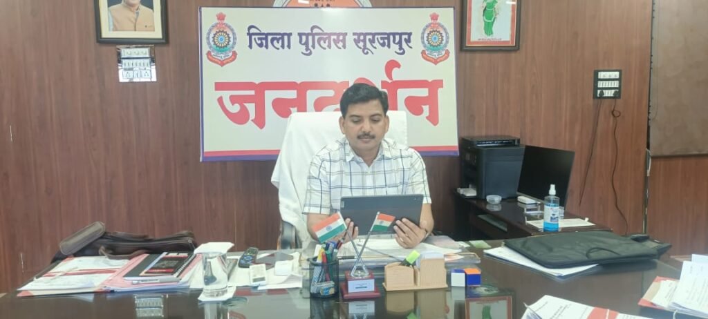 सूरजपुर। लंबित मामलों के निराकरण में तेजी लाने तथा अवैध कार्यो पर प्रभावी रोक लगाने को लेकर सोमवार को पुलिस अधीक्षक श्री रामकृष्ण साहू (भा.पु.से.) ने वर्चुअल माध्यम से जिले के पुलिस अधिकारियों की बैठक ली। इस दौरान उन्होंने थाना-चौकी प्रभारियों को कड़े शब्दों में कहा कि अवैध कोयला तथा नशे के कारोबार बर्दाश्त नहीं की जायेगी, इसके विरूद्ध प्रभावी कार्यवाही के लिए पुलिस अधिकारी पूरी तरह से मुस्तैद रहे, अगर कहीं से भी अवैध कारोबार की सूचना मिलती है तो उस पर त्वरित कार्यवाही की जाए और इनमें संलिप्तों के विरूद्ध कडी कार्यवाही सुनिश्चित करें। अपराधियों में पुलिस का खौफ बनाए रखने तत्परतापूर्वक सख्त कार्यवाही करने व अनसुलझे व लंबित मामलों पर चर्चा कर आरोपियों की गिरफ्तारी कर जल्द निकाल करने के निर्देश दिए।