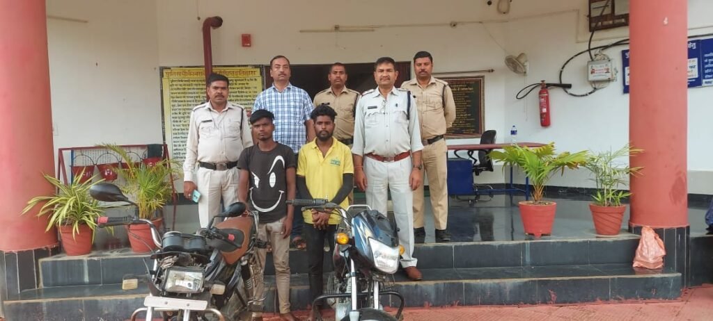मामले की सूचना पर पुलिस अधीक्षक सूरजपुर श्री रामकृष्ण साहू (भा.पु.से.) ने अज्ञात चोर की पतासाजी कर जल्द गिरफ्तार करने के निर्देश चौकी प्रभारी करंजी को दिए। अतिरिक्त पुलिस अधीक्षक मधुलिका सिंह के मार्गदर्शन में चौकी बसदेई पुलिस आरोपियों की पतासाजी में लगी थी इसी बीच मुखबीर से सूचना मिला कि मोटर सायकलों को ग्राम महेशपुर निवासी अनिल सारथी एवं उंचडीह के राम कुमार सारथी के द्वारा चोरी किया गया है। सूचना पर पुलिस ने दबिश देकर अनिल सारथी उर्फ पवन पिता गंगाराम उम्र 23 वर्ष निवासी ग्राम महेशपुर, चौकी लटोरी, हाल निवासी उंचडीह एवं रामकुमार पिता हरकेशर उम्र 22 वर्ष निवासी उंचडीह, चौकी बसदेई को पकड़ा गया। पूछताछ पर दोनों ने बताया कि ग्राम उंचडीह गेल्हापारा में सांस्कृतिक कार्यक्रम से 1 नग मोटर सायकल तथा बसदेई बाजार से 1 नग मोटर सायकल चोरी किए है। आरोपियों के निशानदेही पर चोरी के 2 नग मोटर सायकल कीमत 81000 रूपये को बरामद कर दोनों आरोपियों को गिरफ्तार किया गया। इस कार्यवाही में चौकी प्रभारी बसदेई बृजेश यादव, एएसआई मानिक दास, माधव सिंह, प्रधान आरक्षक लिनुस लकड़ा, आनंद सिंह, आरक्षक विश्वजीत सिंह, अमित सिंह, सुरेश साहू, बाबुनाथ, देवदत्त दुबे व प्रेम सिंह सक्रिय रहे।
