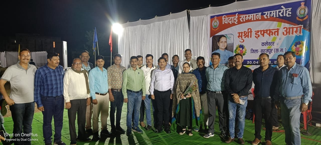 इस अवसर पर कलेक्टर सुश्री इफ्फत आरा़ ने कहा कि जिले में 1 वर्ष का कार्यकाल में जिलेवासियों से बहुत स्नेह, प्यार और सम्मान मिला। इसे वो हमेशा याद करेंगी। उन्होंने जिला प्रशासन व पुलिस के सभी अधिकारियों की सराहना करते हुए कहा कि जिले के विकास को गति देने के लिए सभी का योगदान महत्वपूर्ण रहा है। सभी ने मिल जुलकर एक बेहतर टीम की तरह कार्य किया है। इससे आमजनों का भरोसा प्रशासन व पुलिस के प्रति बढ़ा है। उन्होंने कहा कि यहां के लोग काफी अच्छे है, प्रत्येक अवसरों पर जिलेवासियों का भरपूर सहयोग मिला, शासन की योजनाओं को अंतिम व्यक्ति पर पहुंचने एवं उनके हित में काम करना काफी सुखद होना बताया। विदाई समारोह में स्थानीय कलाकेन्द्र के शिक्षक व बच्चों के द्वारा शानदार डांस की प्रस्तुति व गीत संगीत से समा को बांधे रखा।