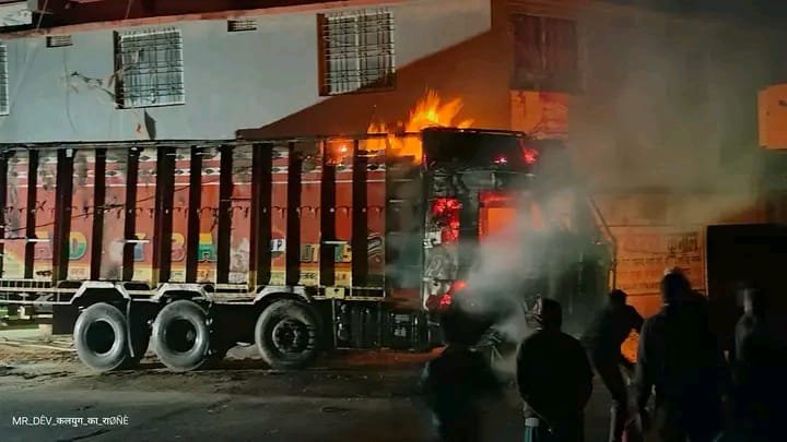 ट्रक में लगी आग वाहन चालक मौका से फरार,,