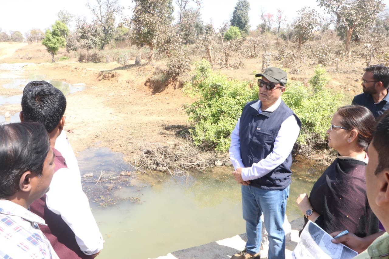 सूरजपुर/ सरगुजा संभागायुक्त डॉ. संजय कुमार अलंग ने प्रेमनगर ब्लॉक के धूकवारी नरवा का निरीक्षण किया। निरीक्षण के दौरान उन्होंने परकुलेशन टैंक, स्ट्रगल कंटूर ट्रेंच, गली प्लग, एडेन डैम, ब्रशउद, डबरी…